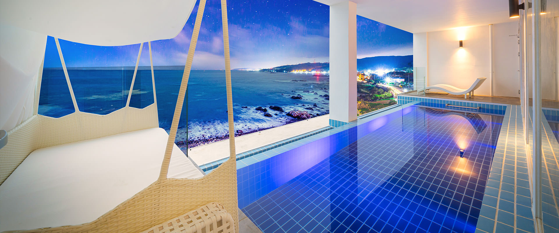 바다를 바라보며 즐길 수 있는 프라이빗 수영장과 스파,