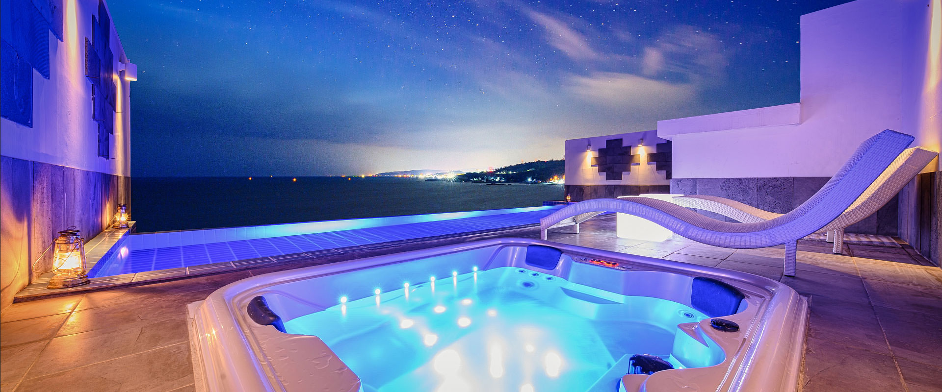 바다를 바라보며 즐길 수 있는 인피니티풀과 제트스파, 개별바비큐를
